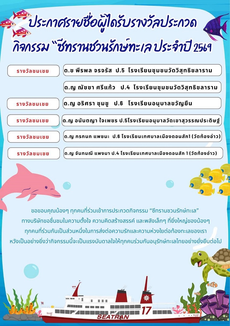 ขอขอบคุณน้องๆ ทุกคนที่ร่วมเข้าการประกวดกิจกรรม “ซีทรานชวนรักษ์ทะเล”