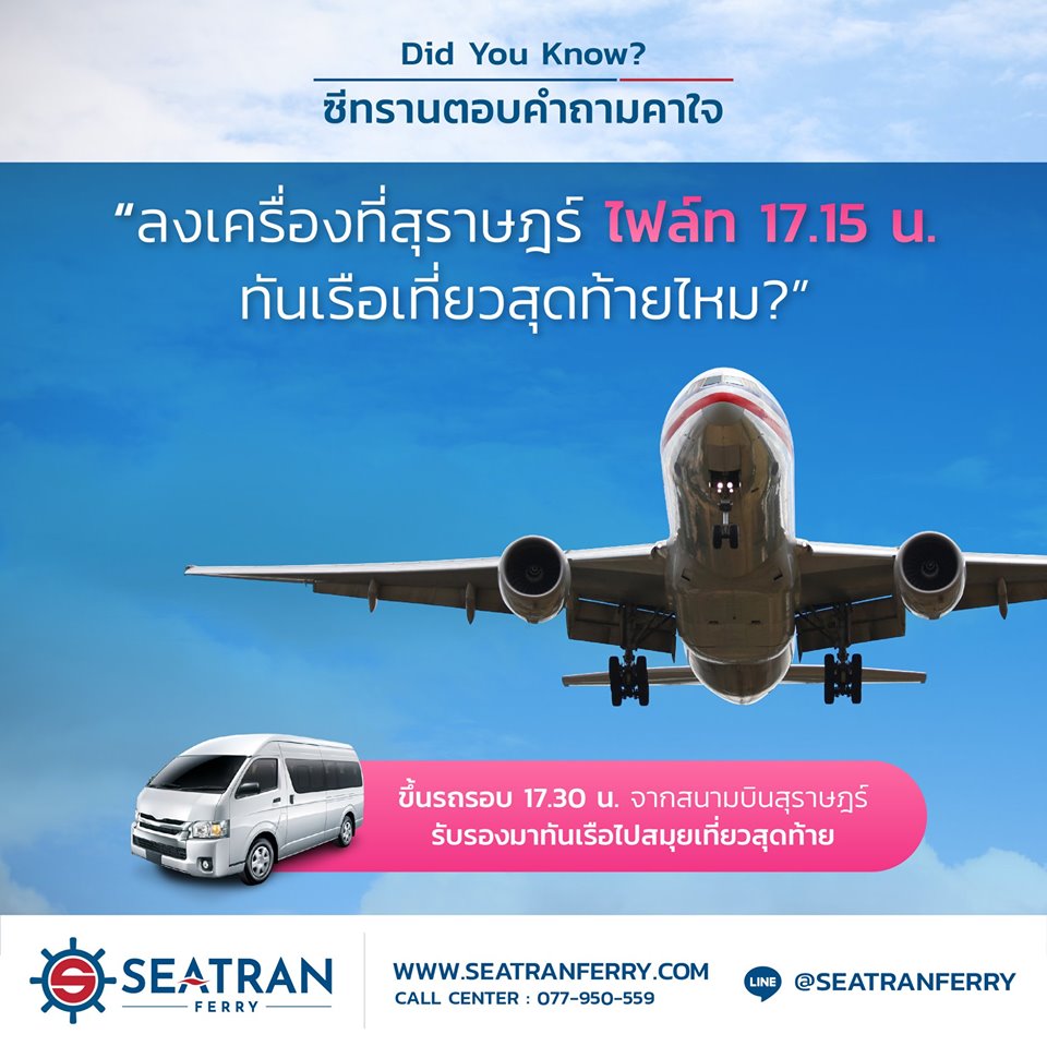 ถาม: ลงเครื่องที่สนามบินสุราษฎร์ฯ ไฟล์ท 17.15 น. จะยังทันเรือรอบสุดท้ายที่ข้ามไปสมุยไหม?